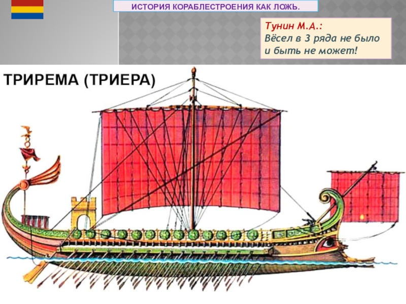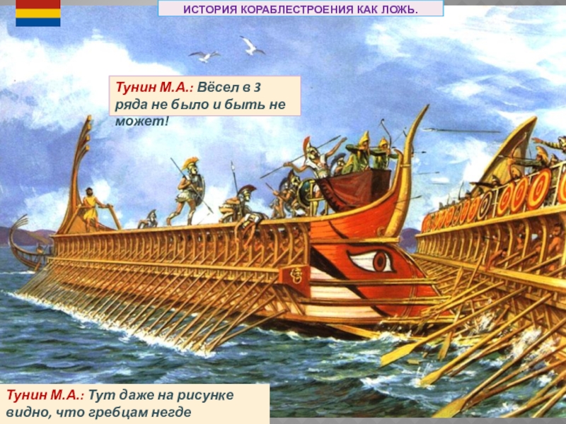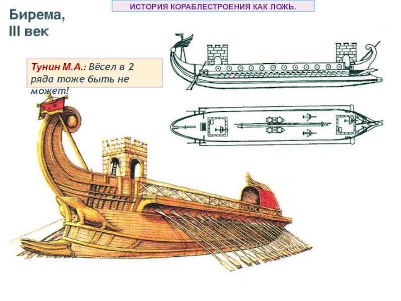 Слайд 58Тунин М.А.: Вёсел в 3 ряда не было и быть не