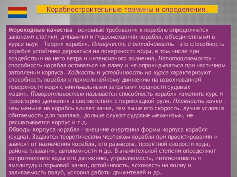 Слайд 10Мореходные качества – основные требования к кораблю определяются законами статики, динамики и