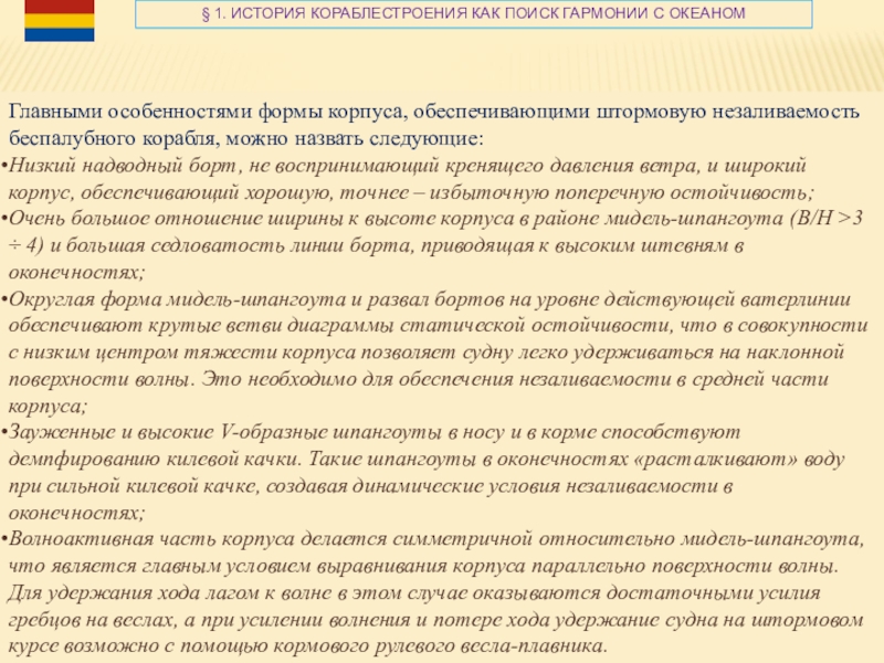 Слайд 18§ 1. История кораблестроения как поиск гармонии с океаном