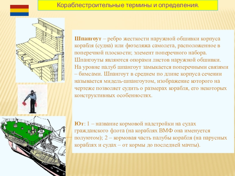 Слайд 14Шпангоут – ребро жесткости наружной обшивки корпуса корабля (судна) или фюзеляжа самолета,