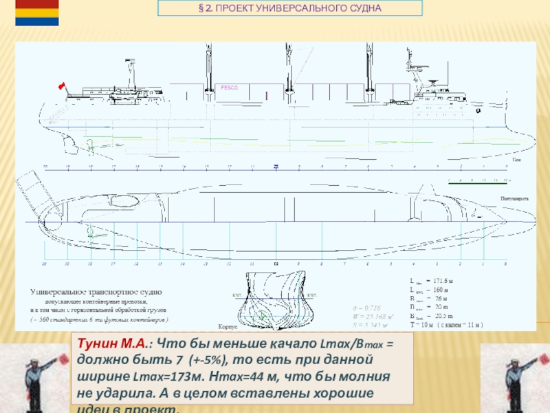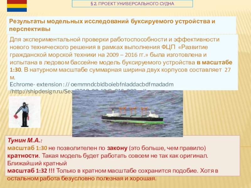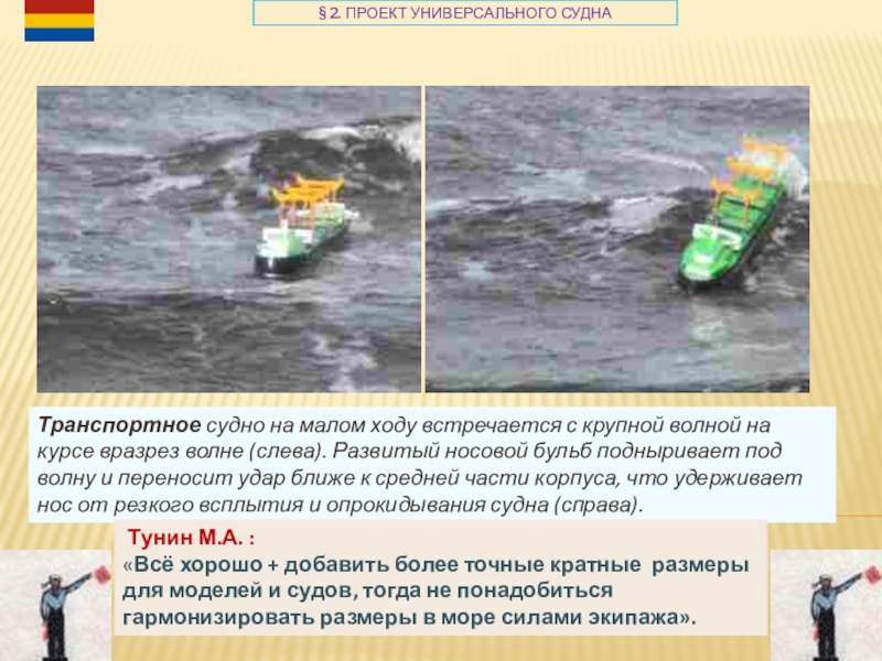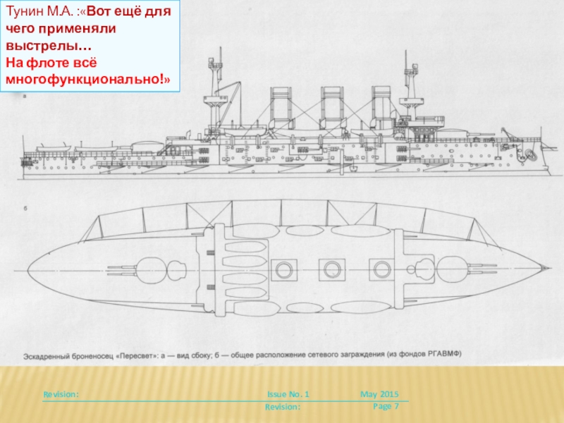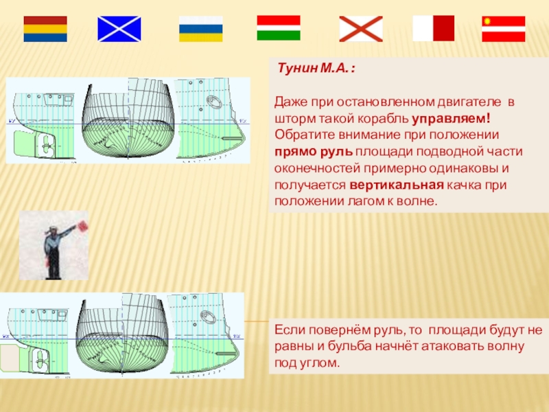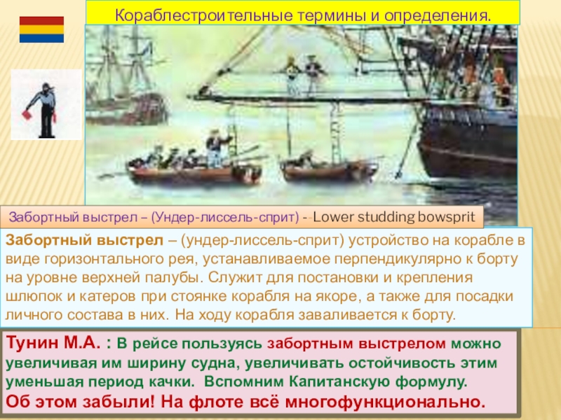 Слайд 6Тунин М.А. : В рейсе пользуясь забортным выстрелом можно увеличивая им