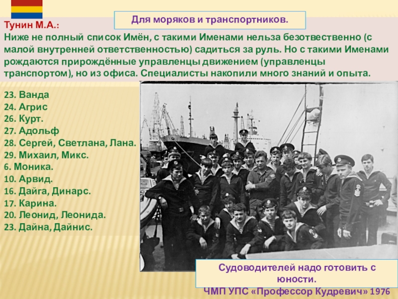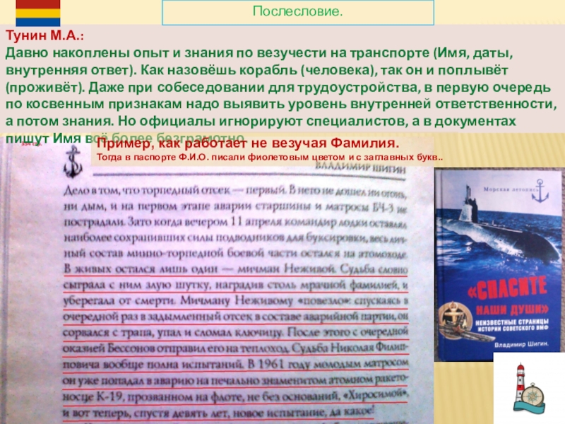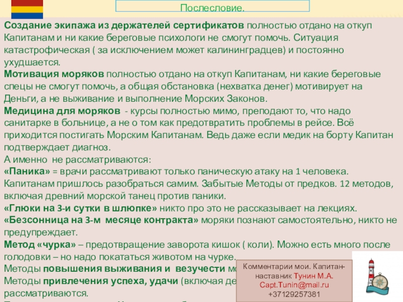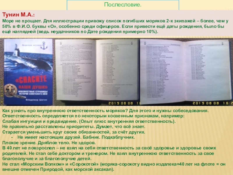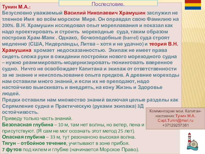 Комментарии мои, их много, особенно в конце. Можно начинать читать с конца. Капитан-наставник Тунин М.А.