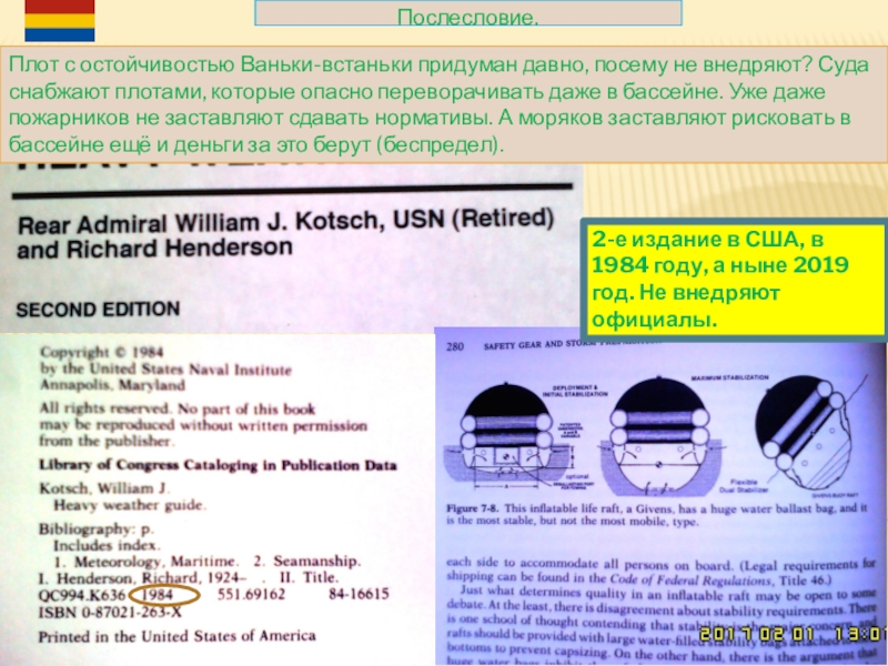 Ваньки-встаньки придуман давно, посему не внедряют? Суда снабжают плотами, которые опасно переворачивать даже в бассейне. Уже даже пожарников не заставляют сдавать нормативы. А моряков заставляют рисковать в бассейне ещё и деньги за это берут (беспредел).