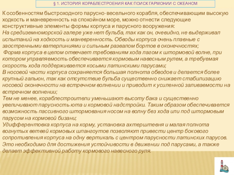 Слайд 21§ 1. История кораблестроения как поиск гармонии с океаном