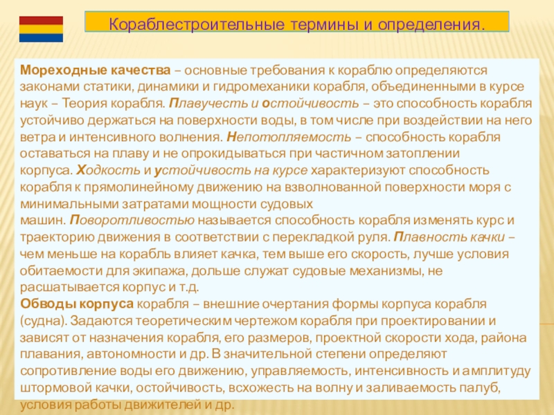 Слайд 11Мореходные качества – основные требования к кораблю определяются законами статики, динамики и