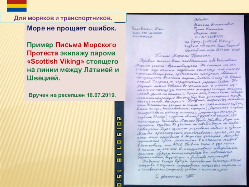Протеста экипажу парома «Scottish Viking» стоящего на линии между Латвией и Швецией.