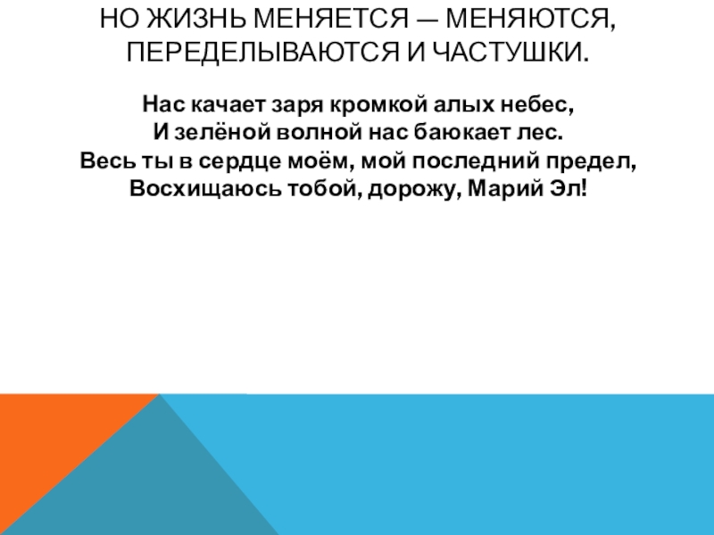 Слайд 14Но жизнь меняется — меняются, переделываются и частушки.