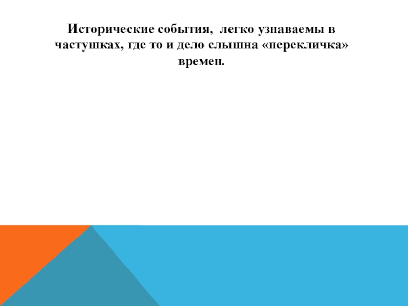 Слайд 6Исторические события, легко узнаваемы в частушках, где то и дело слышна