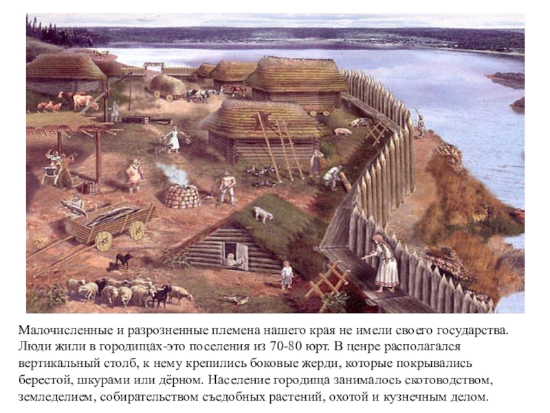 Слайд 12Малочисленные и разрозненные племена нашего края не имели своего государства. Люди