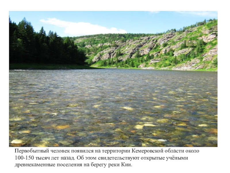 Слайд 2Первобытный человек появился на территории Кемеровской области около 100-150 тысяч лет