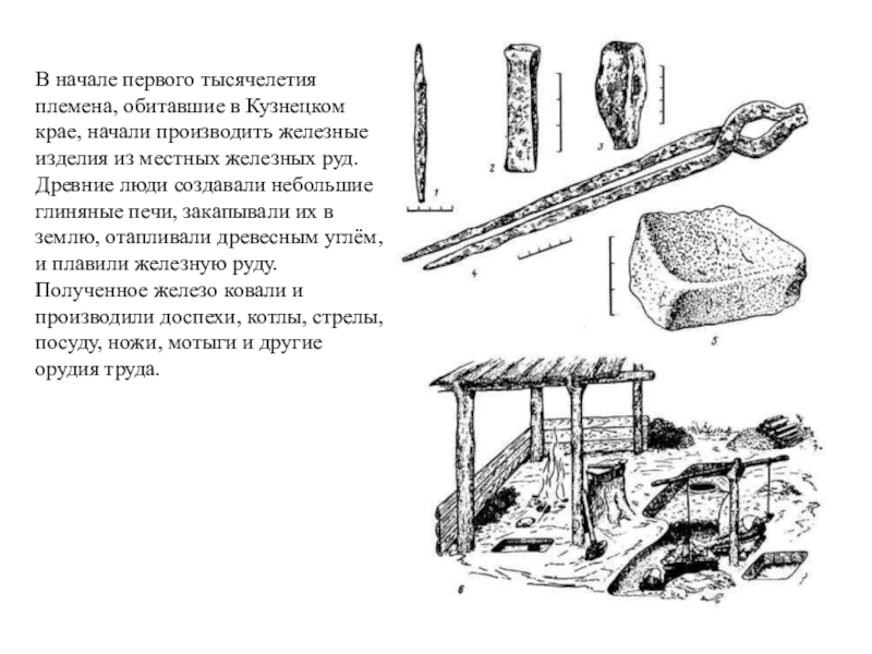 Слайд 10В начале первого тысячелетия племена, обитавшие в Кузнецком крае, начали производить