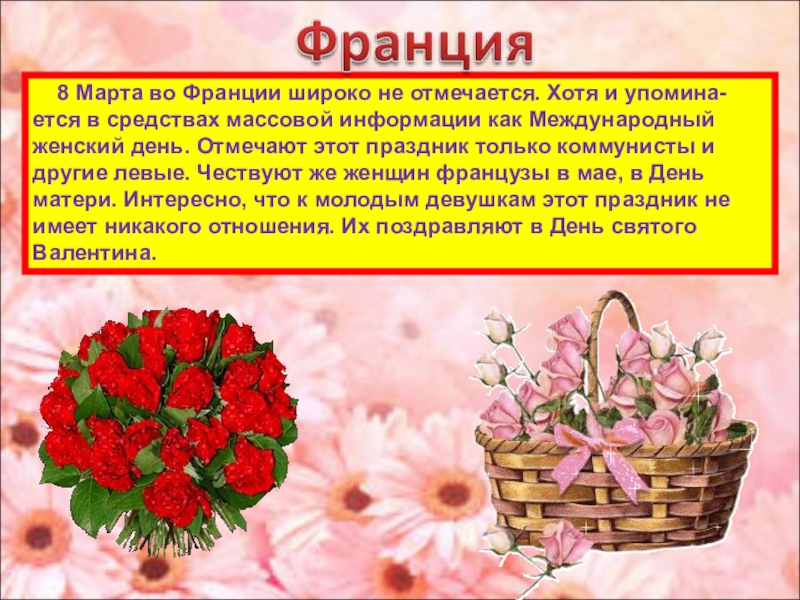 Слайд 13 8 Марта во Франции широко не отмечается. Хотя и