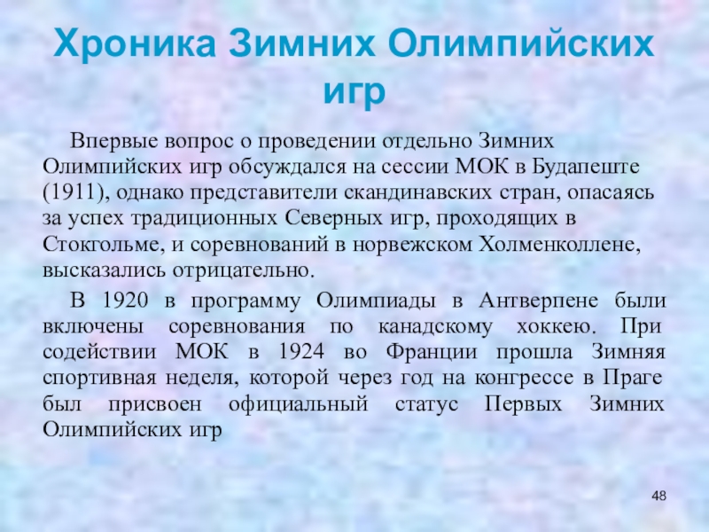 Впервые вопрос о проведении отдельно Зимних Олимпийских игр