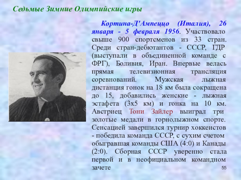 Кортина-Д'Ампеццо (Италия), 26 января - 5 февраля 1956.