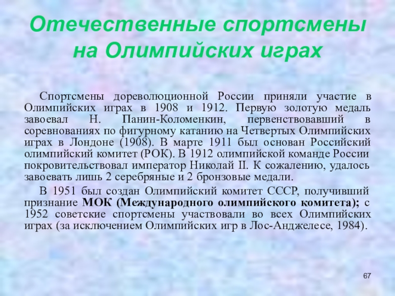 Слайд 67Отечественные спортсмены на Олимпийских играх