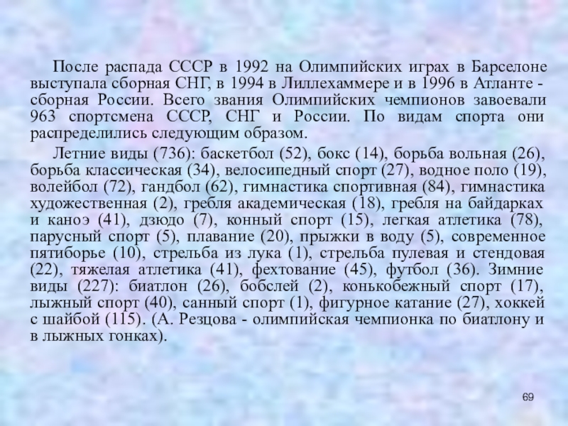 Слайд 69После распада СССР в 1992 на Олимпийских играх в Барселоне выступала