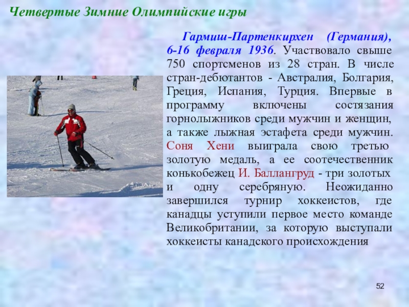 Гармиш-Партенкирхен (Германия), 6-16 февраля 1936. Участвовало свыше 750