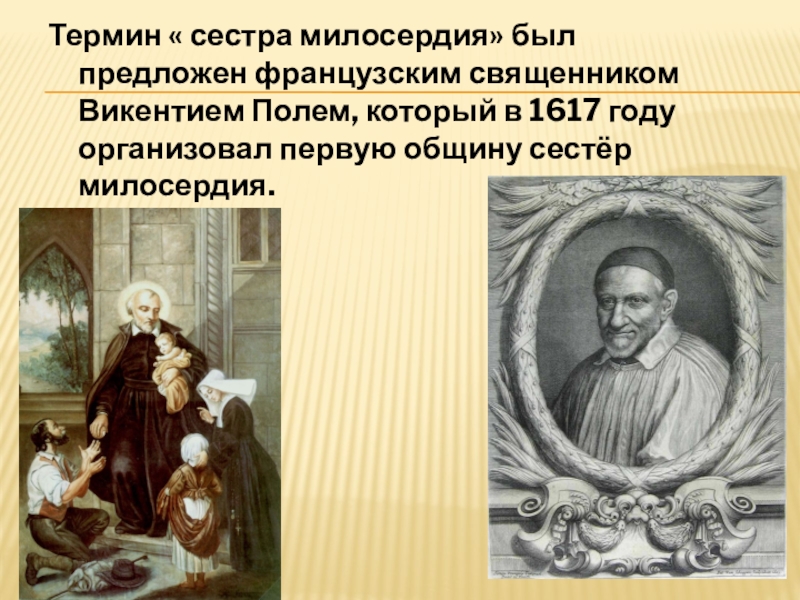 Слайд 6Термин « сестра милосердия» был предложен французским священником Викентием Полем, который