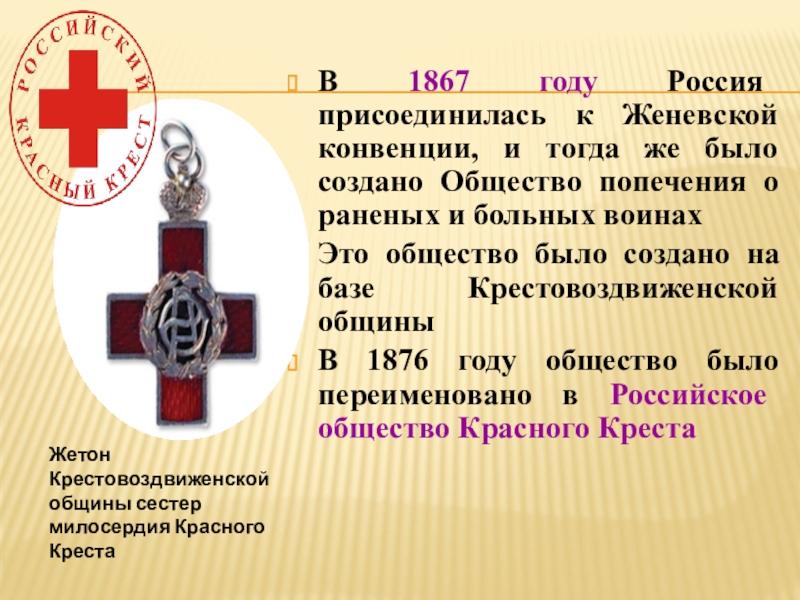 Слайд 43В 1867 году Россия присоединилась к Женевской конвенции, и тогда же