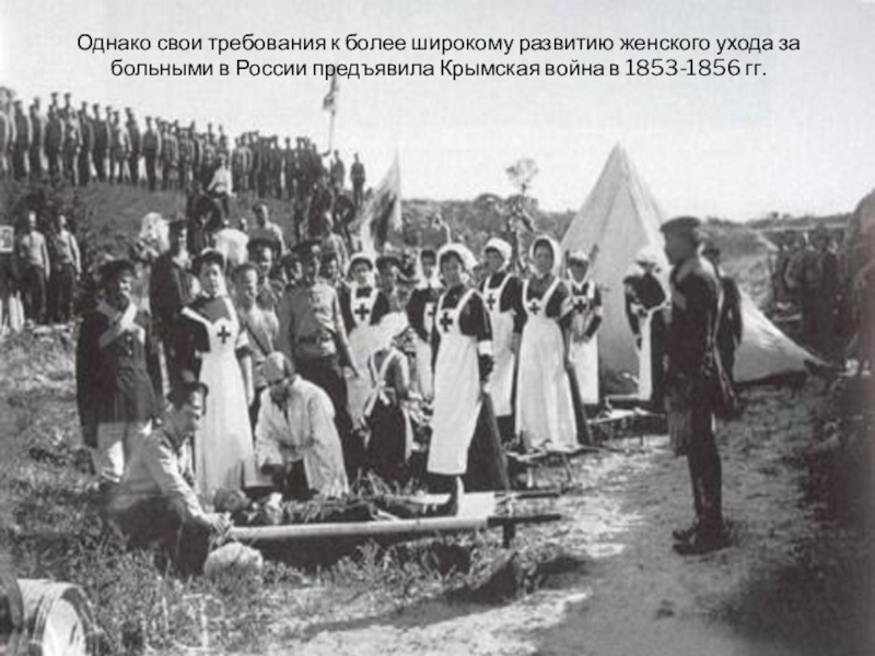 Слайд 24Однако свои требования к более широкому развитию женского ухода за больными