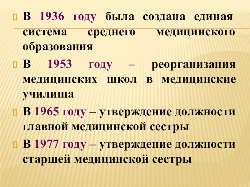 Слайд 48В 1936 году была создана единая система среднего медицинского образования
