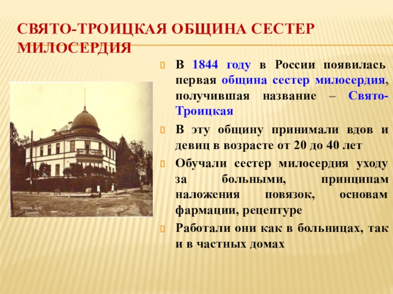 Слайд 22СВЯТО-ТРОИЦКАЯ ОБЩИНА СЕСТЕР МИЛОСЕРДИЯ