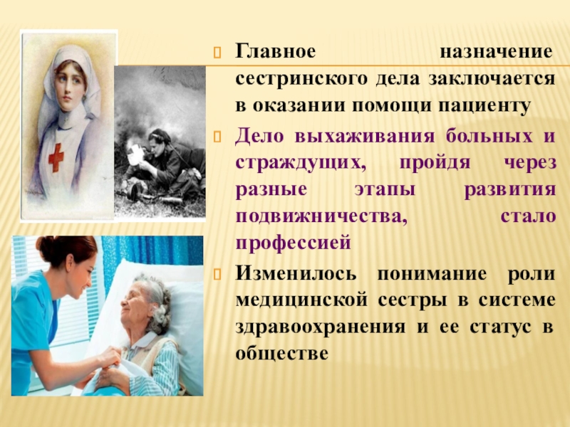 Слайд 47Главное назначение сестринского дела заключается в оказании помощи пациенту