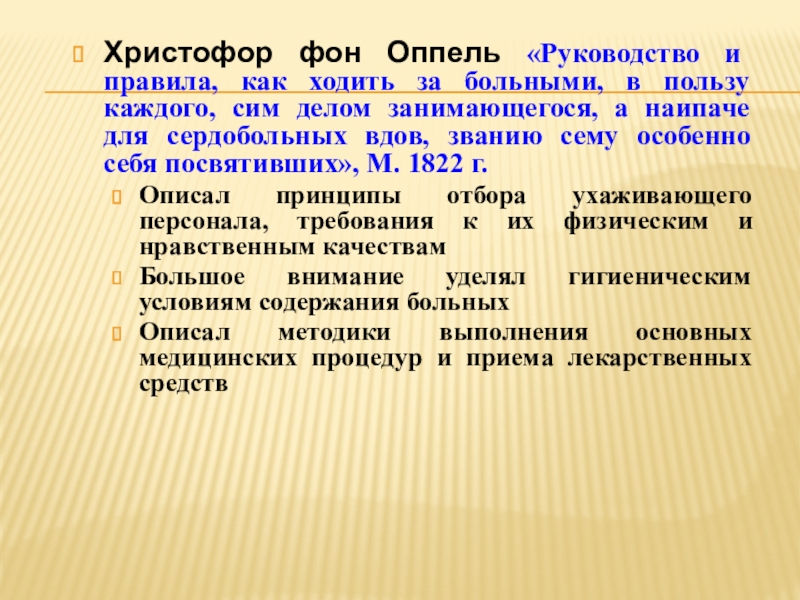 Слайд 19Христофор фон Оппель «Руководство и правила, как ходить за больными, в