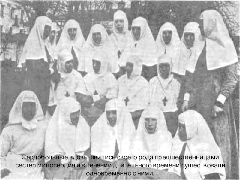 Слайд 14Сердобольные вдовы явились своего рода предшественницами сестер милосердия и в течении