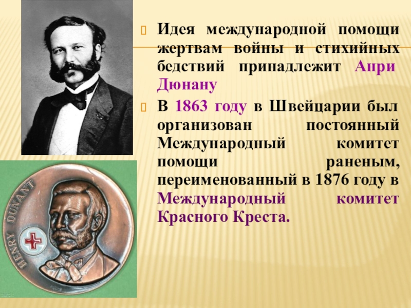 Слайд 41Идея международной помощи жертвам войны и стихийных бедствий принадлежит Анри Дюнану