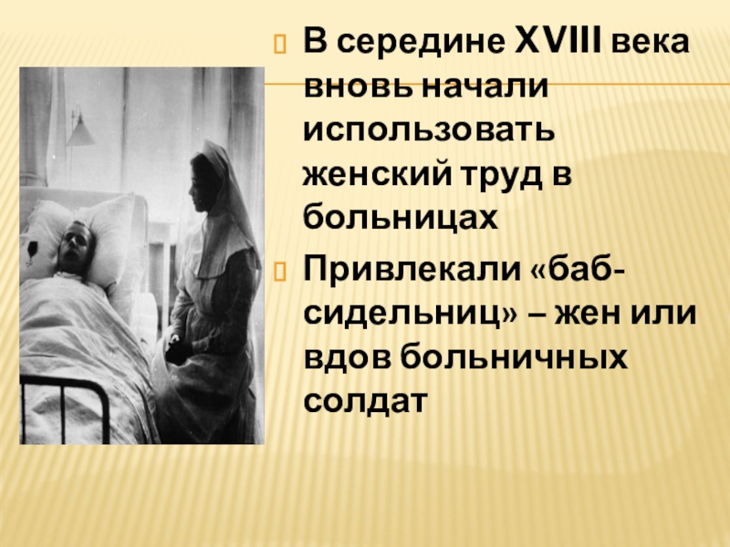 Слайд 12В середине XVIII века вновь начали использовать женский труд в больницах
