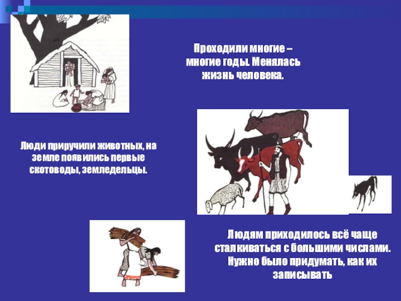 Люди приручили животных, на земле появились первые скотоводы, земледельцы.