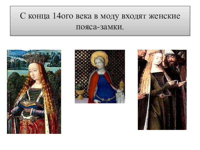 Слайд 8 С конца 14ого века в моду входят женские пояса-замки.