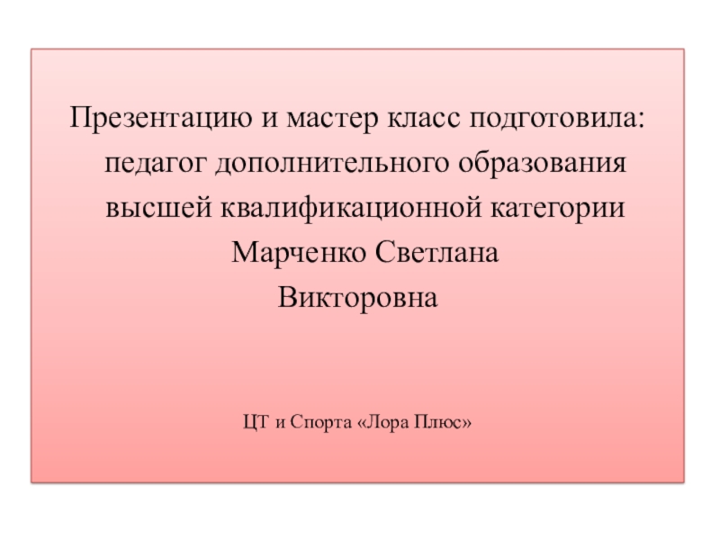 Презентацию и мастер класс подготовила:  педагог дополнительного образования  высшей квалификационной категории  Марченко