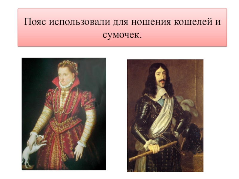 Слайд 10Пояс использовали для ношения кошелей и сумочек.