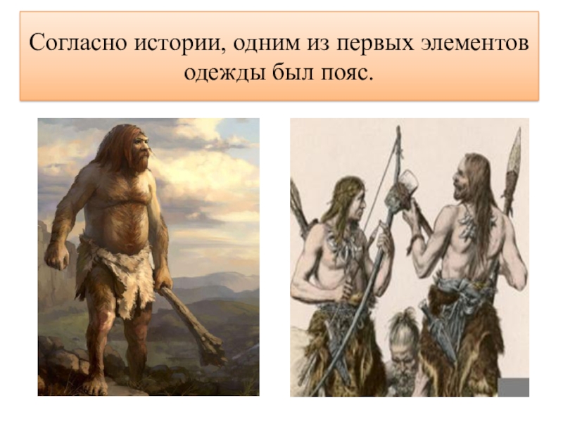 Слайд 2Согласно истории, одним из первых элементов одежды был пояс.