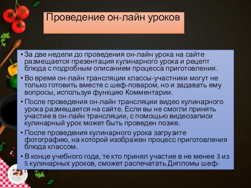 11.00-11.10 – Открытие он-лайн кулинарной школы