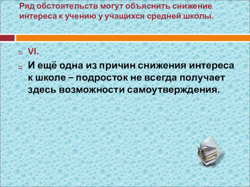 И ещё одна из причин снижения интереса к школе – подросток не всегда получает здесь возможности самоутверждения.