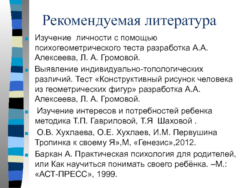 Баркан А. Практическая психология для родителей, или Как научиться понимать своего ребёнка. –М.: «АСТ-ПРЕСС», 1999.