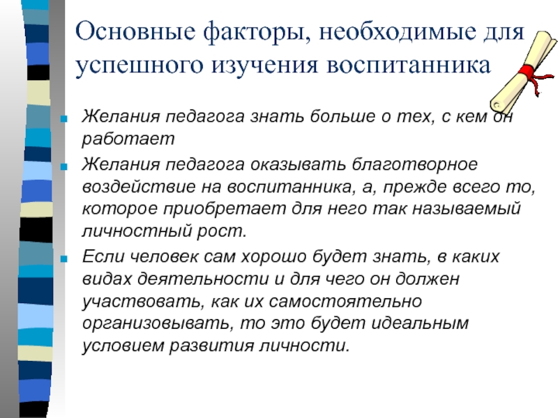 Слайд 5Основные факторы, необходимые для успешного изучения воспитанника