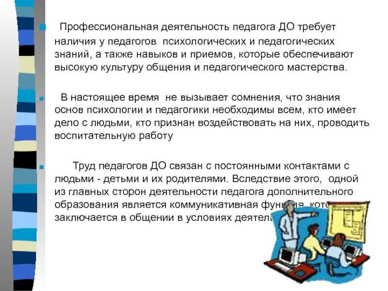 Слайд 2 Профессиональная деятельность педагога ДО требует наличия у педагогов психологических и
