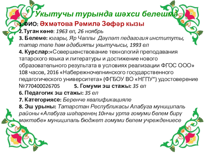 бирү мәктәбе» муниципаль бюджет гомуми белем учреждениесенең