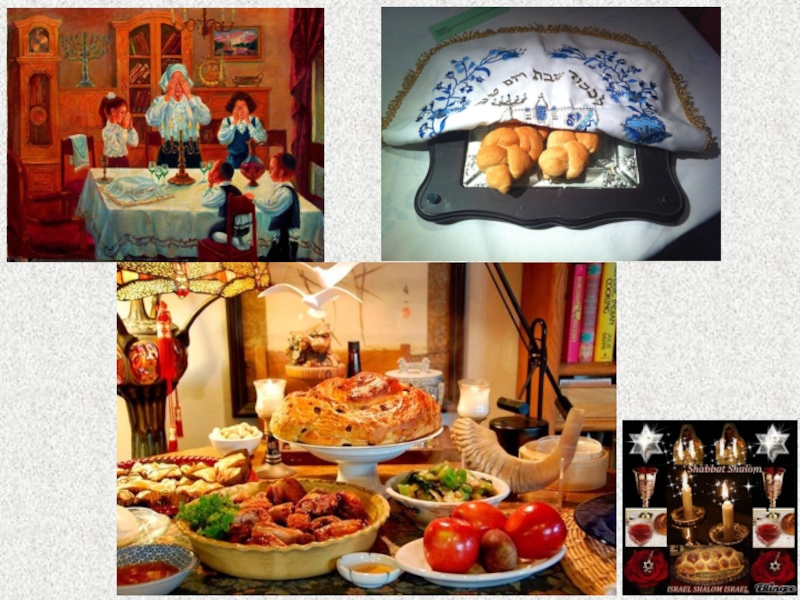 И наконец главный момент - субботняя трапеза. Это время, когда все садятся за стол, где уже горят свечи. Все жители дома и их гости теперь должны находиться в хорошем расположении духа, что очень важно. Перед началом приема пищи евреи исполняют песню, она называется "Шалом алейхем", затем они совершают Кидуш и обязательно омывают руки.