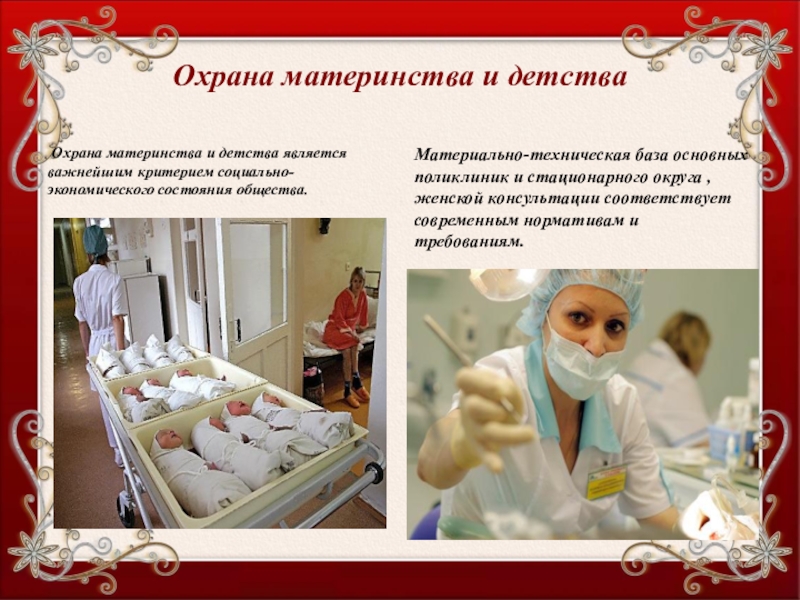 Материально-техническая база основных поликлиник и стационарного округа , женской консультации соответствует современным нормативам и требованиям.