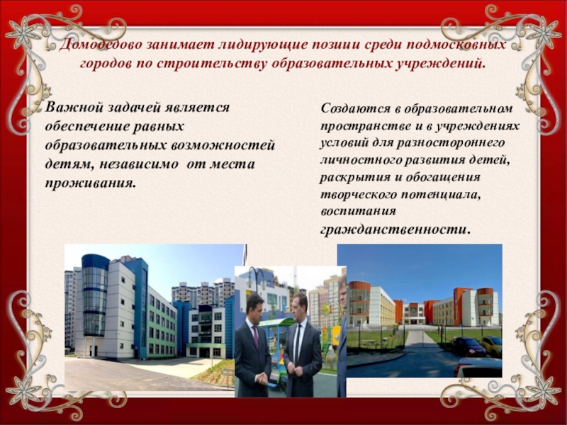 Образование также является ведущим вектором муниципальной политики Администрации городского округа Домодедово.