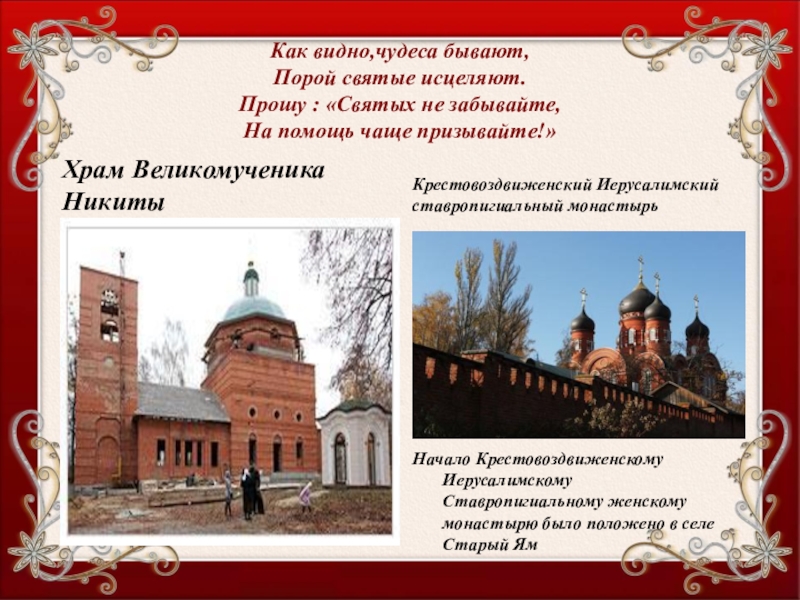 Начало Крестовоздвиженскому Иерусалимскому Ставропигиальному женскому монастырю было положено в селе Старый Ям