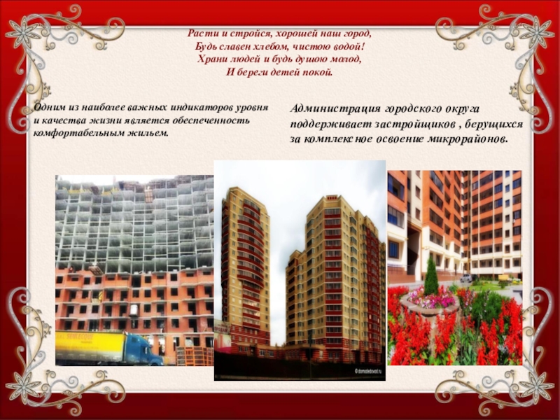 Администрация городского округа поддерживает застройщиков , берущихся за комплексное освоение микрорайонов.