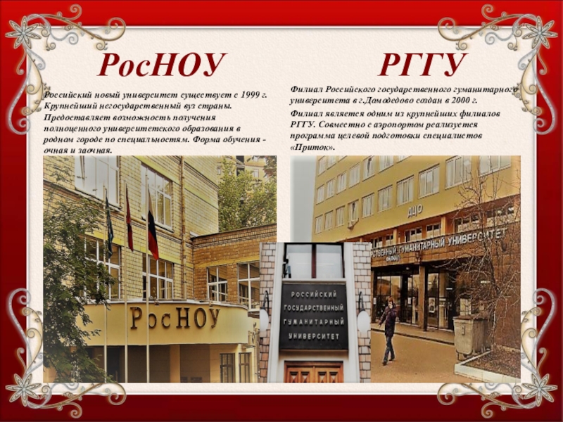 Филиал Российского государственного гуманитарного университета в г.Домодедово создан в 2000 г.