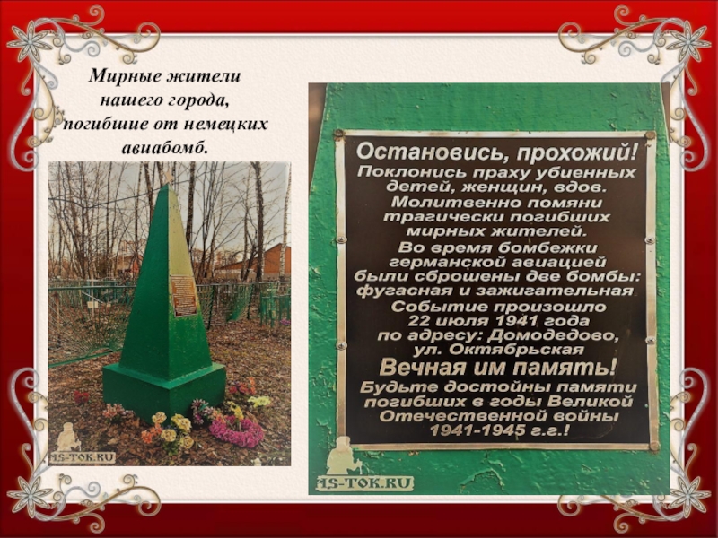 В этот день, как и по всей России , тысячи и тысячи домодедовцев идут к Памятнику павшим воинам –поклониться погибшим и поблагодарить тех, кто остался в живых.