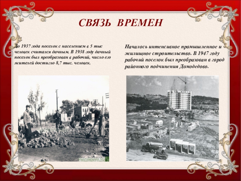 Началось интенсивное промышленное и жилищное строительство. В 1947 году рабочий поселок был преобразован в город районного подчинения Домодедово.